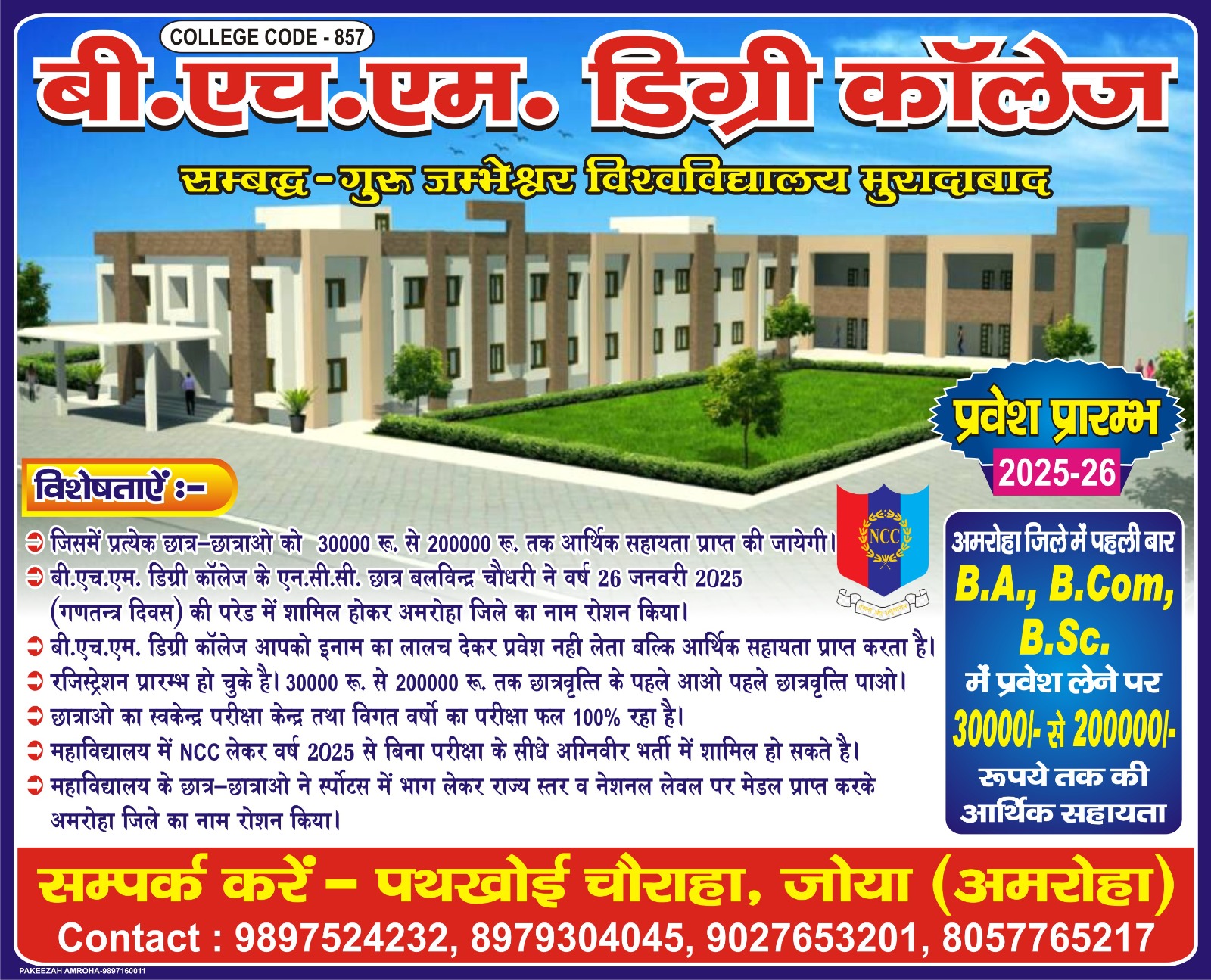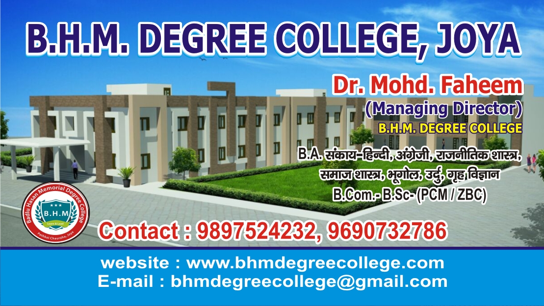 B.H.M Degree College Joya, Distt- Amroha (Affiliated GURU JAMBHESHWAR UNIVERSITY, MORADABAD (U.P), College Code: 857)